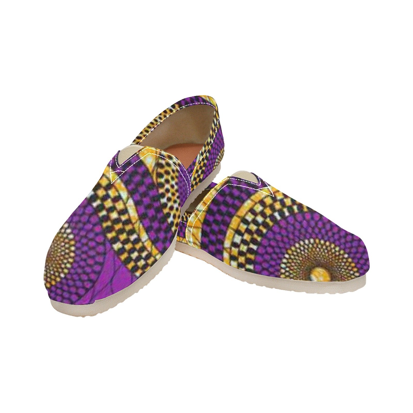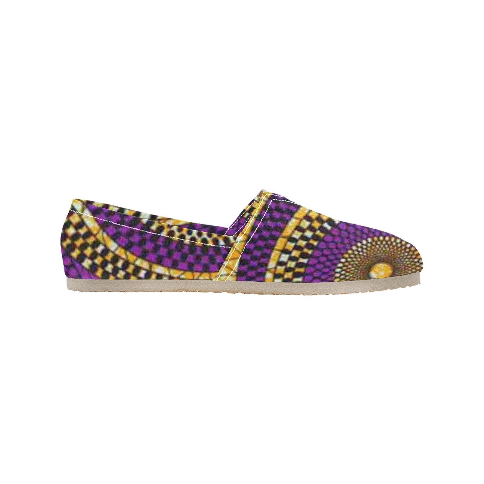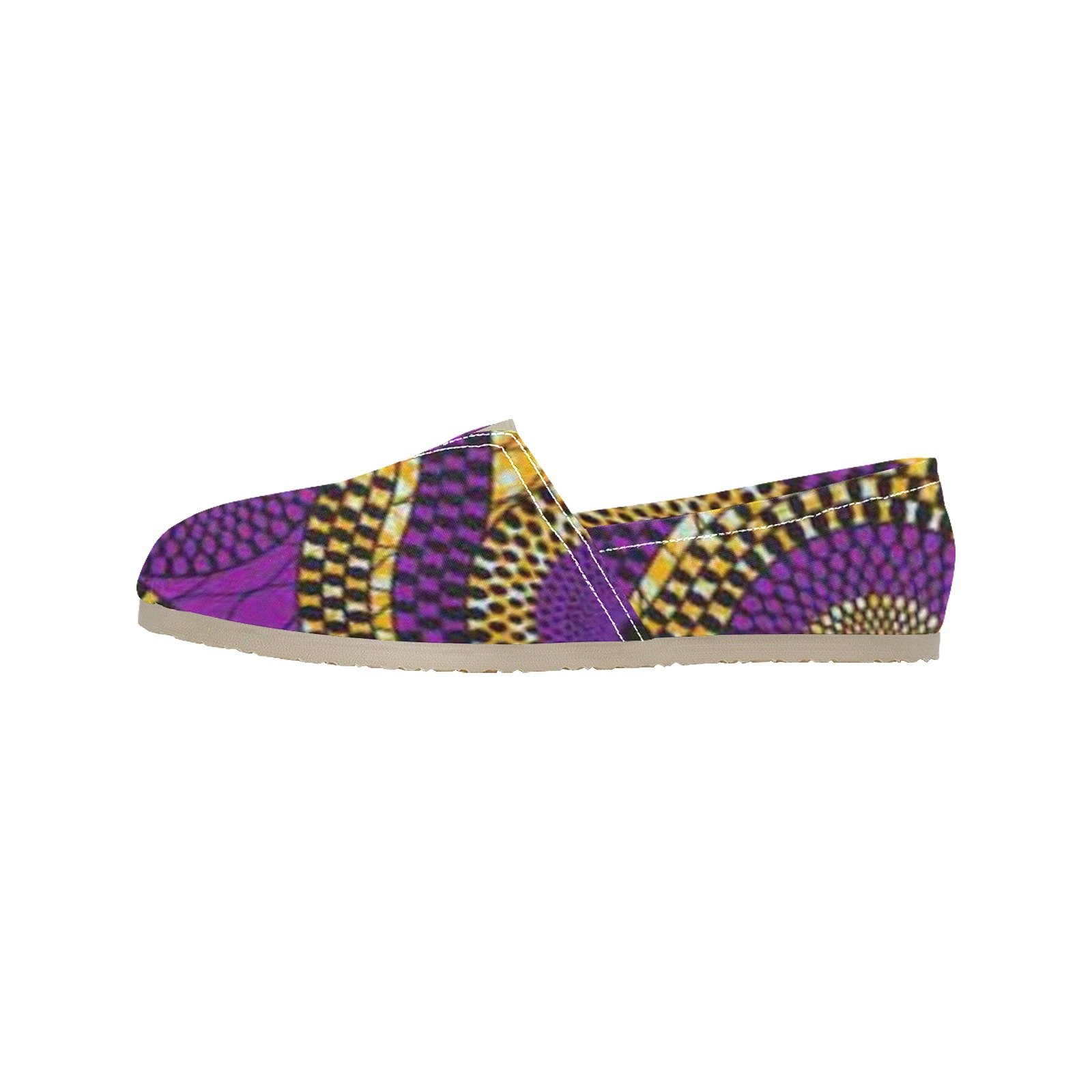 This Classic Slip-On features customizable canvas vamp, brown faux PU insole, and beige elasticized