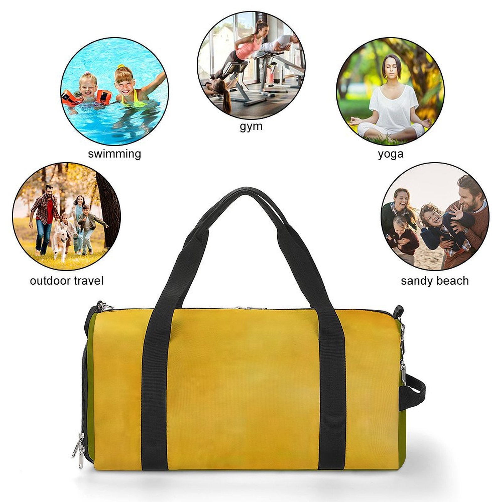 Main compartment holds gym clothes, towels, toiletries, and more. Smaller side pockets are perfect for phones, tablets, and other personal items.
