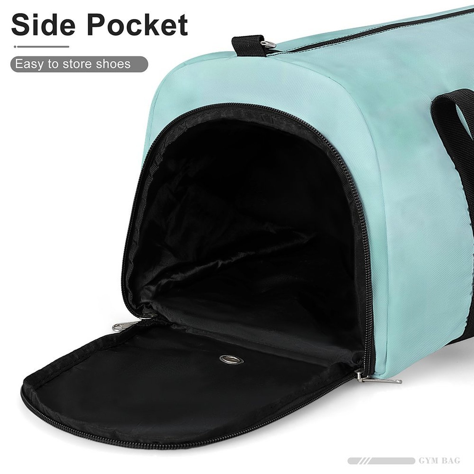 Main compartment holds gym clothes, towels, toiletries, and more. Smaller side pockets are perfect for phones, tablets, and other personal items.