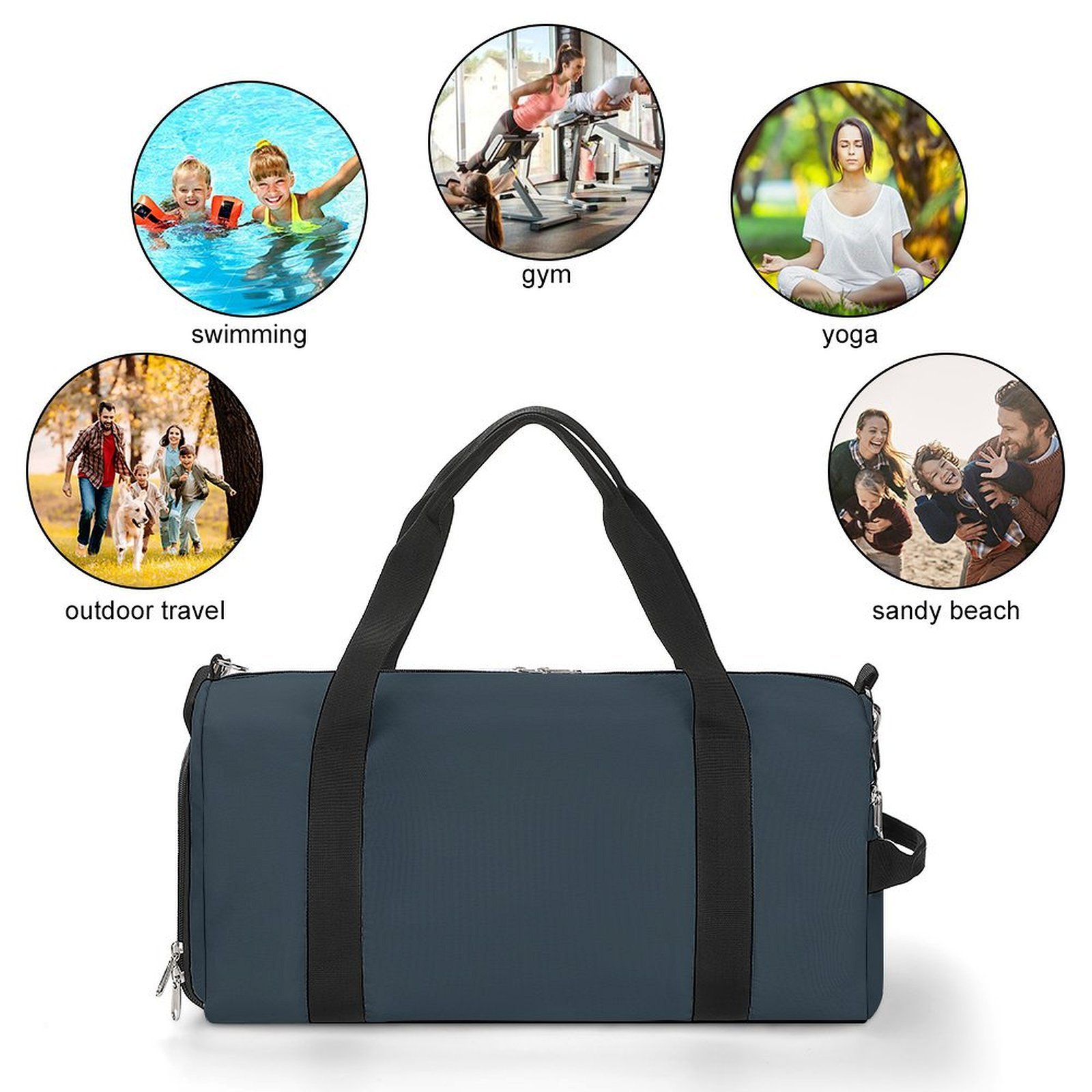 Main compartment holds gym clothes, towels, toiletries, and more. Smaller side pockets are perfect for phones, tablets, and other personal items.