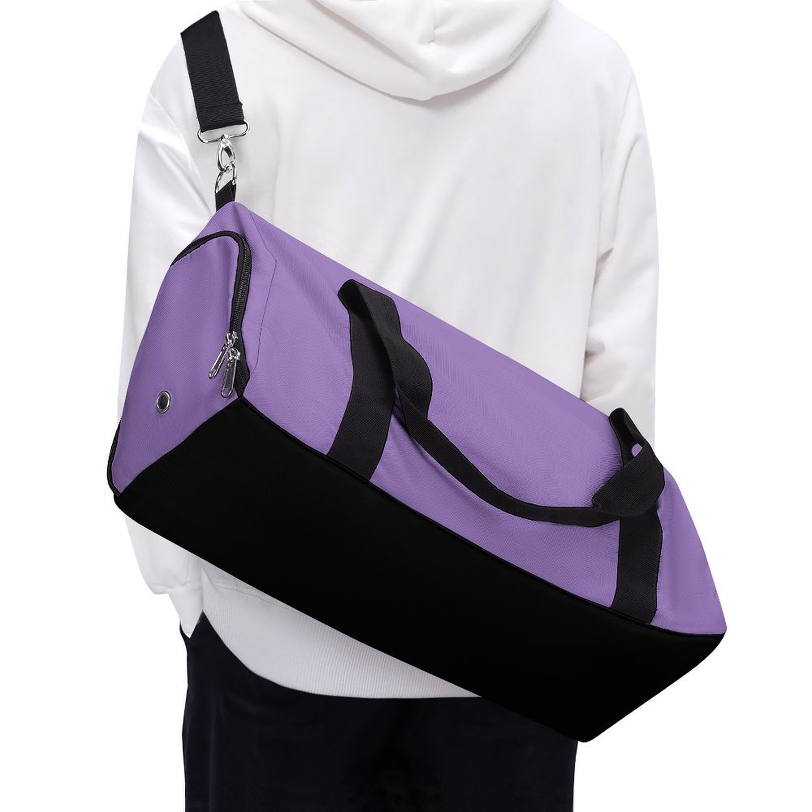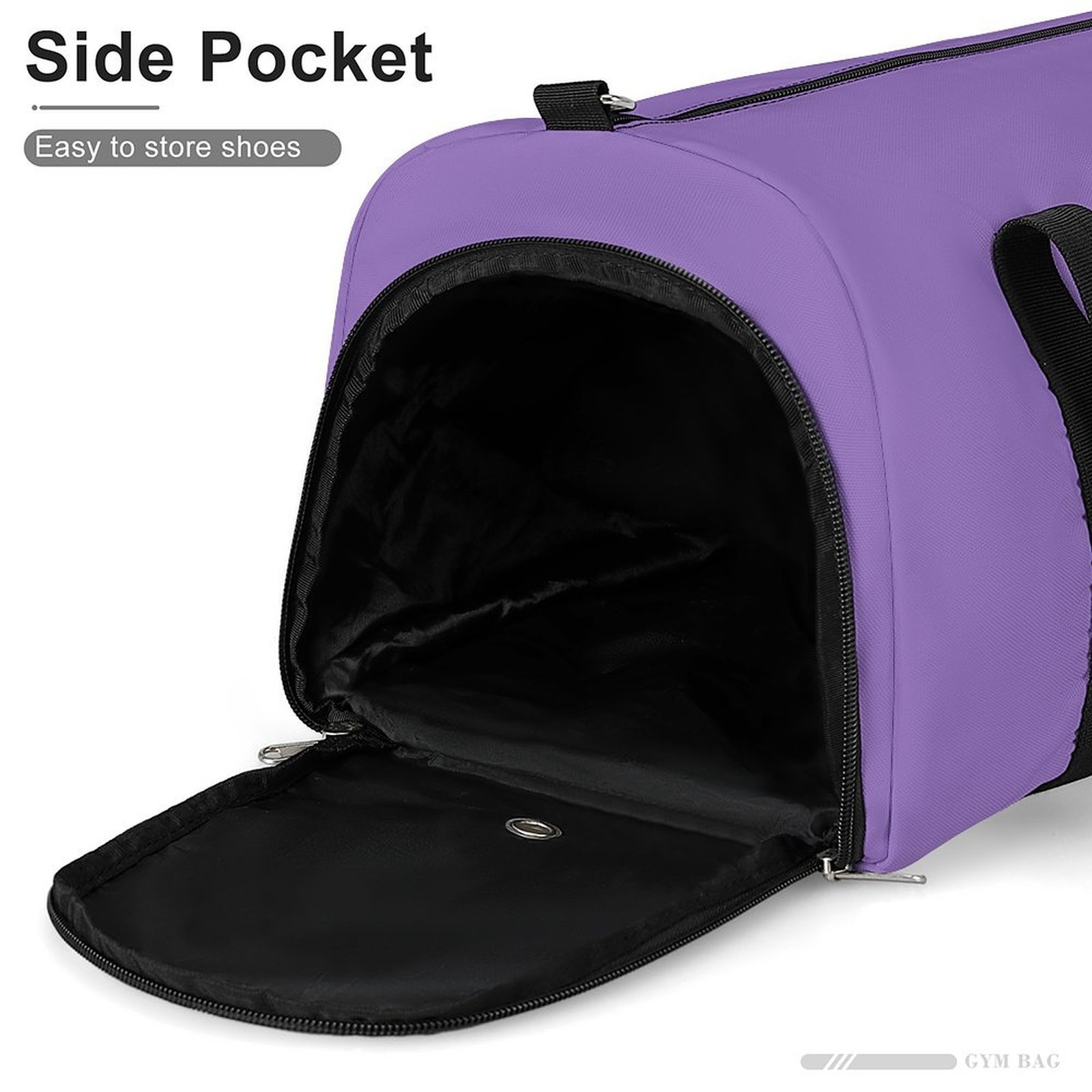 Main compartment holds gym clothes, towels, toiletries, and more. Smaller side pockets are perfect for phones, tablets, and other personal items.